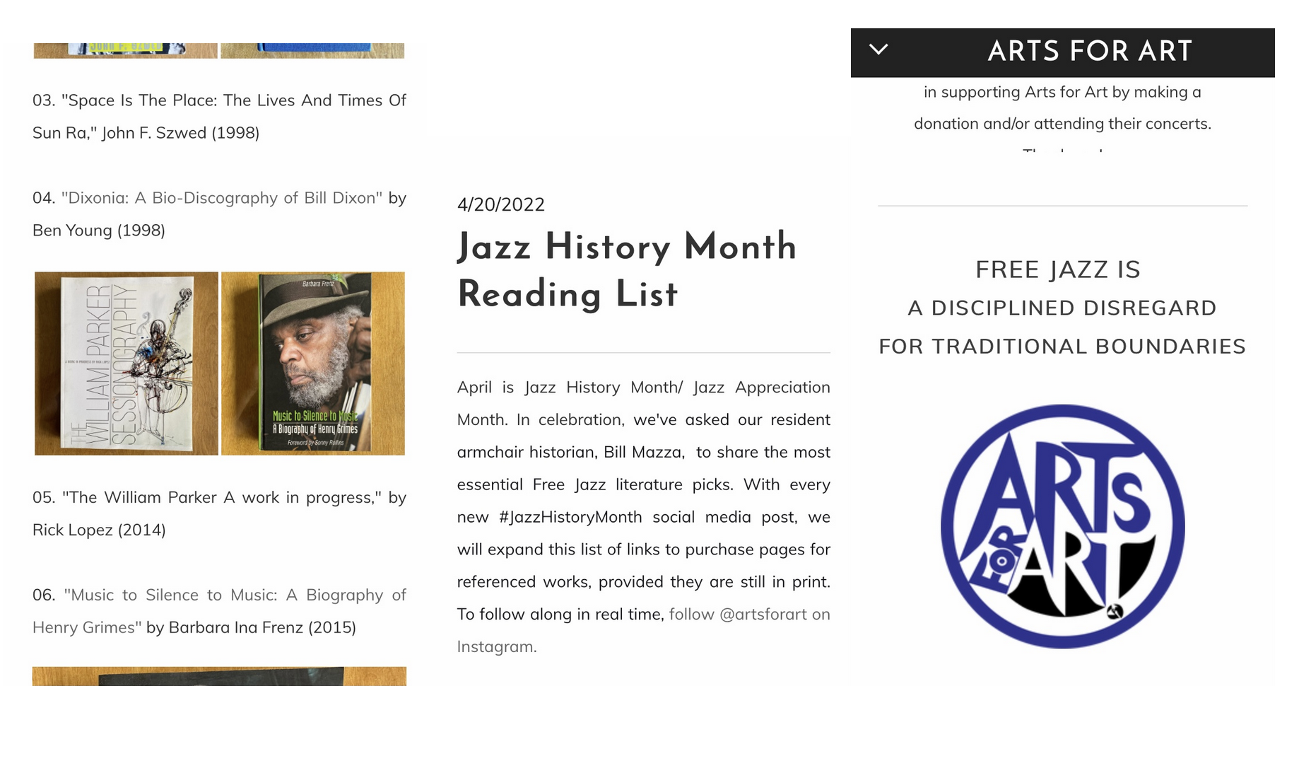 - Arts For Art - Jazz History Month Reading List (April 20, 2022)